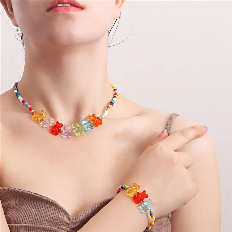 Conjunto de Collar y Pulsera Colgante Oso Bohemio